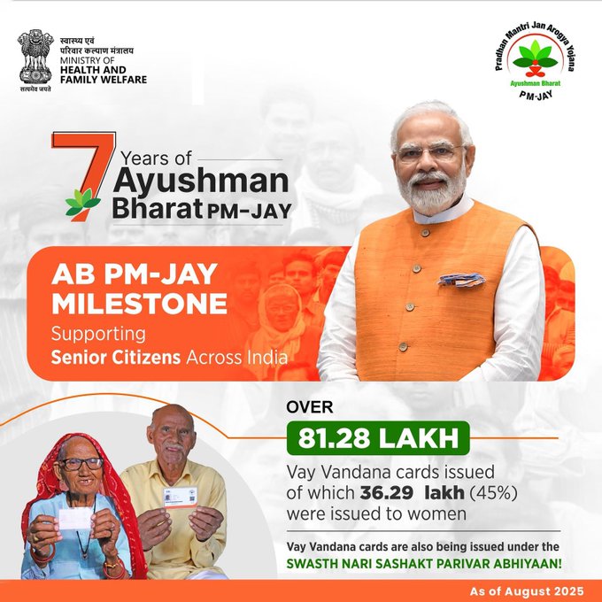 ਪੋਸਟ ਵਿੱਚ ਅੱਗੇ ਕਿਹਾ ਗਿਆ ਹੈ “ਸ਼ਾਸਨ ਵਿੱਚ ਸੱਚੀ ਅਗਵਾਈ ਕੱਲ੍ਹ ਦੀਆਂ ਜ਼ਰੂਰਤਾਂ ਦਾ ਅੰਦਾਜ਼ਾ ਲਗਾਉਣ ਵਿੱਚ ਹੈ। ਜਿਵੇਂ ਕਿ ਅਸੀਂ ਆਯੁਸ਼ਮਾਨ ਭਾਰਤ – ਪ੍ਰਧਾਨ ਮੰਤਰੀ ਜਨ ਅਰੋਗਿਆ ਯੋਜਨਾ (AB-PMJAY) ਦੇ 7 ਸਾਲ ਮਨਾ ਰਹੇ ਹਾਂ, ਭਾਰਤ ਇੱਕ ਸਿਹਤ ਸੰਭਾਲ ਕ੍ਰਾਂਤੀ ਦਾ ਜਸ਼ਨ ਮਨਾ ਰਿਹਾ ਹੈ ਜਿਸਨੇ ਡਿਲੀਵਰੀ ਨੂੰ ਮੁੜ ਪਰਿਭਾਸ਼ਿਤ ਕੀਤਾ ਹੈ, 55+ ਕਰੋੜ ਨਾਗਰਿਕਾਂ ਲਈ ਵਿੱਤੀ ਸੁਰੱਖਿਆ, ਸਰਵਵਿਆਪੀ ਪਹੁੰਚ ਅਤੇ ਦੇਖਭਾਲ ਵਿੱਚ ਮਾਣ ਨੂੰ ਯਕੀਨੀ ਬਣਾਇਆ ਹੈ। ਇਹ ਇੱਕ ਪ੍ਰੋਗਰਾਮ ਹੈ ਜੋ ਇਸ ਗੱਲ ਦਾ ਬਲੂਪ੍ਰਿੰਟ ਤਿਆਰ ਕਰਦਾ ਹੈ ਕਿ ਕਿਵੇਂ ਦੂਰਦਰਸ਼ੀ ਨੀਤੀ ਜਨਤਕ ਸਿਹਤ ਦੀ ਕਿਸਮਤ ਨੂੰ ਦੁਬਾਰਾ ਲਿਖ ਸਕਦੀ ਹੈ,” ।