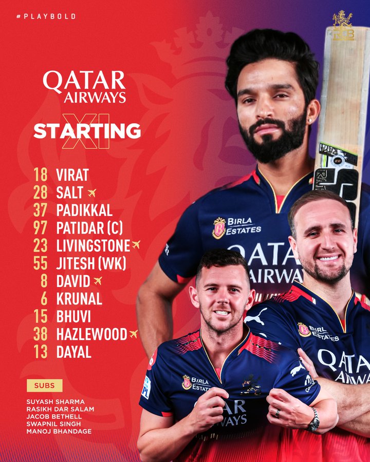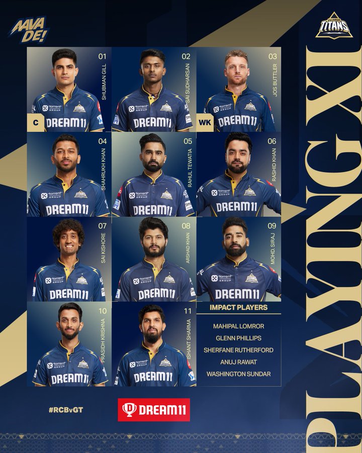 ਚੰਡੀਗੜ੍ਹ, 2ਅਪ੍ਰੈਲ(ਵਿਸ਼ਵ ਵਾਰਤਾ) IPL 2025 : Indian Premier League 2025 ਦਾ 14ਵਾਂ ਮੈਚ ਅੱਜ ਰਾਇਲ ਚੈਲੇਂਜਰਜ਼ ਬੰਗਲੌਰ (ਆਰਸੀਬੀ) ਅਤੇ ਗੁਜਰਾਤ ਟਾਈਟਨਜ਼ (ਜੀਟੀ) ਵਿਚਕਾਰ ਐਮ ਚਿੰਨਾਸਵਾਮੀ ਸਟੇਡੀਅਮ ਵਿੱਚ ਖੇਡਿਆ ਜਾ ਰਿਹਾ ਹੈ। ਗੁਜਰਾਤ ਨੇ ਟਾਸ ਜਿੱਤ ਕੇ ਗੇਂਦਬਾਜ਼ੀ ਕਰਨ ਦਾ ਫੈਸਲਾ ਲਿਆ ਹੈ।