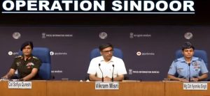 ਨਵੀ ਦਿੱਲੀ, 9 ਮਈ (ਵਿਸ਼ਵ ਵਾਰਤਾ) : ਭਾਰਤ ਦੇ ਵਿਦੇਸ਼ ਸਕੱਤਰ ਵਿਕਰਮ ਮਿਸਰੀ, ਕਰਨਲ ਸੋਫੀਆ ਕੁਰੈਸ਼ੀ ਅਤੇ ਵਿੰਗ ਕਮਾਂਡਰ ਵਿਓਮਿਕਾ ਸਿੰਘ ਨੇ ਪਾਕਿਸਤਾਨ ਦੀਆਂ ਨਾਪਾਕ ਸਾਜ਼ਿਸ਼ਾਂ ਅਤੇ ਉਸ ਤੋਂ ਬਾਅਦ ਭਾਰਤ ਦੀ ਜਵਾਬੀ ਕਾਰਵਾਈ (Operation Sindoor) ਬਾਰੇ ਇੱਕ ਵਿਸ਼ੇਸ਼ ਬ੍ਰੀਫਿੰਗ ਰਾਹੀਂ ਜਾਣਕਾਰੀ ਦਿੱਤੀ। ਨਨਕਾਣਾ ਸਾਹਿਬ ‘ਤੇ ਹਮਲੇ ਦੇ ਦਾਅਵਿਆਂ ‘ਤੇ ਵਿਦੇਸ਼ ਸਕੱਤਰ ਵਿਕਰਮ ਮਿਸਰੀ ਨੇ ਕਿਹਾ, “ਆਪਣੀਆਂ ਕਾਰਵਾਈਆਂ ਨੂੰ ਸਵੀਕਾਰ ਕਰਨ ਦੀ ਬਜਾਏ, ਪਾਕਿਸਤਾਨ ਨੇ ਇਹ ਬੇਤੁਕਾ ਅਤੇ ਘਿਣਾਉਣਾ ਦਾਅਵਾ ਕੀਤਾ ਹੈ ਕਿ ਭਾਰਤੀ ਹਥਿਆਰਬੰਦ ਸੈਨਾਵਾਂ ਅੰਮ੍ਰਿਤਸਰ ਵਰਗੇ ਸ਼ਹਿਰਾਂ ਨੂੰ ਨਿਸ਼ਾਨਾ ਬਣਾ ਰਹੀਆਂ ਹਨ।