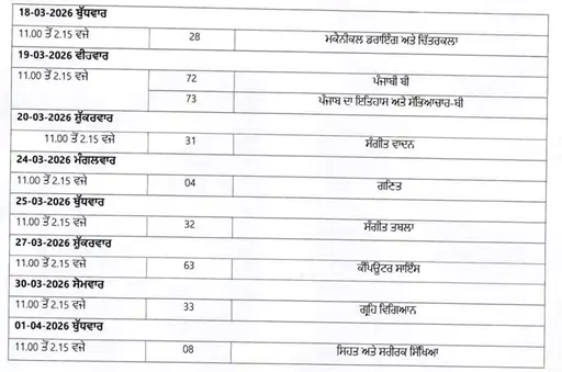 10ਵੀਂ ਜਮਾਤ ਦੀਆਂ ਬੋਰਡ ਪ੍ਰੀਖਿਆਵਾਂ 6 ਮਾਰਚ ਨੂੰ ਸ਼ੁਰੂ ਹੋਣਗੀਆਂ ਅਤੇ 1 ਅਪ੍ਰੈਲ ਨੂੰ ਖਤਮ ਹੋਣਗੀਆਂ। ਬਾਰ੍ਹਵੀਂ ਜਮਾਤ ਦੀਆਂ ਪ੍ਰੀਖਿਆਵਾਂ 17 ਫਰਵਰੀ ਨੂੰ ਸ਼ੁਰੂ ਹੋਣਗੀਆਂ ਅਤੇ 4 ਅਪ੍ਰੈਲ ਨੂੰ ਖਤਮ ਹੋਣਗੀਆਂ। ਪੰਜਾਬ ਸਕੂਲ ਸਿੱਖਿਆ ਬੋਰਡ ਨੇ ਸਾਰੇ ਵਿਦਿਆਰਥੀਆਂ ਨੂੰ ਸਮੇਂ ਸਿਰ ਪ੍ਰੀਖਿਆ ਦੀ ਤਿਆਰੀ ਕਰਨ ਅਤੇ ਡੇਟਸ਼ੀਟ ਸੰਬੰਧੀ ਵਿਸਤ੍ਰਿਤ ਜਾਣਕਾਰੀ ਲਈ ਬੋਰਡ ਦੀ ਅਧਿਕਾਰਤ ਵੈੱਬਸਾਈਟ ‘ਤੇ ਜਾਣ ਦੀ ਸਲਾਹ ਦਿੱਤੀ ਹੈ। ਸੂਬੇ ਵਿੱਚ ਲਗਭਗ 900,000 ਵਿਦਿਆਰਥੀ ਪ੍ਰੀਖਿਆ ਦੇਣਗੇ।