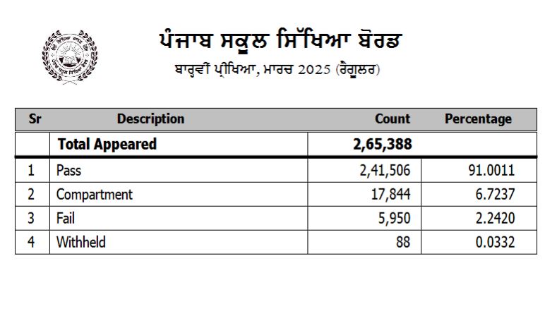 PSEB 12ਵੀਂ ਜਮਾਤ ਦੇ ਨਤੀਜਿਆਂ ਦਾ ਐਲਾਨ