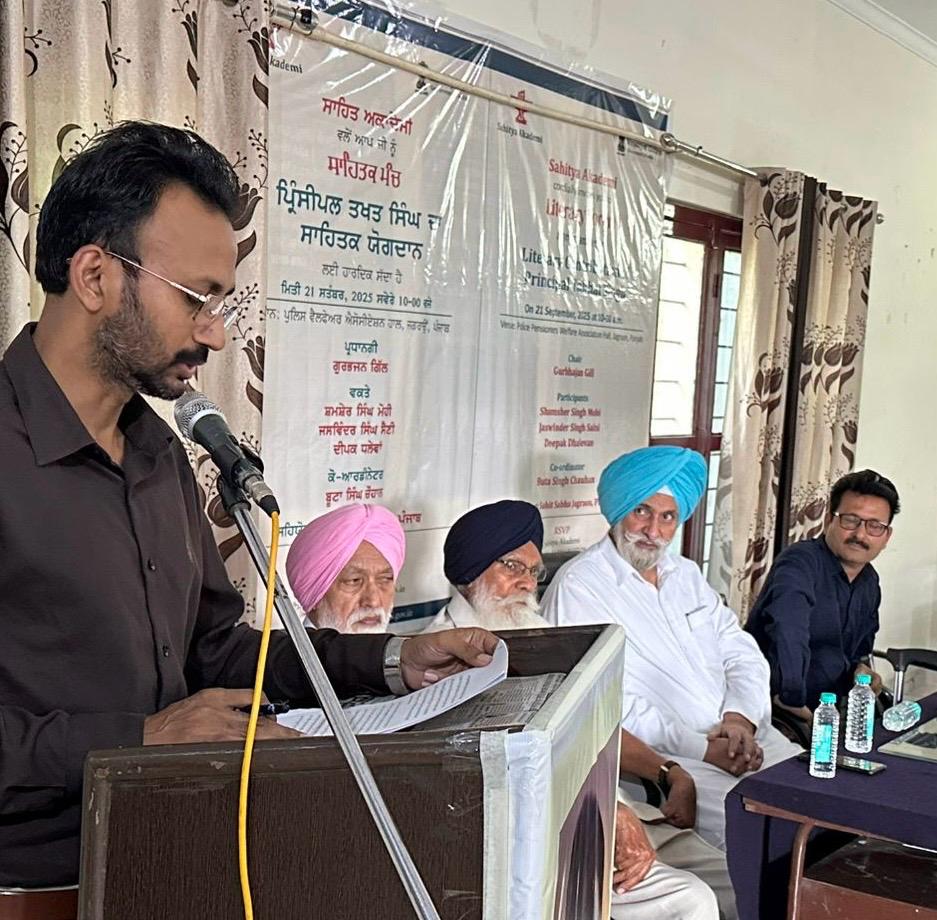 PUNJAB : ਸ਼੍ਰੋਮਣੀ ਪੰਜਾਬੀ ਗ਼ਜ਼ਲਕਾਰ ਪ੍ਰਿੰਸੀਪਲ ਤਖ਼ਤ ਸਿੰਘ ਦੀ ਸਾਹਿੱਤਕ ਦੇਣ ਸੰਬੰਧੀ ਭਾਰਤੀ ਸਾਹਿਤ ਅਕਾਡਮੀ ਦਿੱਲੀ ਵੱਲੋਂਂ ਜਗਰਾਉਂ ‘ਚ ਵਿਚਾਰ ਗੋਸ਼ਟੀ