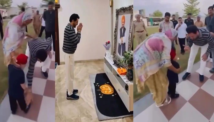 ਹਵੇਲੀ ‘ਚ ਸਿੱਧੂ ਮੂਸੇਵਾਲਾ ਦੀ ਮਾਂ ਚਰਨ ਕੌਰ ਅਤੇ ਫੇਰ ਛੋਟੇ ਸਿੱਧੂ ਮੂਸੇਵਾਲਾ ਨੂੰ ਮਿਲਣ ਤੋਂ ਬਾਅਦ ਗੁਰਦਾਸ ਮਾਨ ਨੇ ਮਰਹੂਮ ਸਿੱਧੂ ਮੂਸੇਵਾਲਾ ਦੀ ਫੋਟੋ ਨੂੰ ਮੱਥਾ ਟੇਕਿਆ ਅਤੇ ਉਸਨੂੰ ਸਲਾਮ ਕੀਤਾ। ਮੁਲਾਕਾਤ ਦੌਰਾਨ, ਗੁਰਦਾਸ ਮਾਨ ਨੇ ਸਿੱਧੂ ਮੂਸੇਵਾਲਾ ਦੇ ਛੋਟੇ ਭਰਾ ਪ੍ਰਤੀ ਸਤਿਕਾਰ ਪ੍ਰਗਟ ਕਰਦੇ ਹੋਏ, ਉਸਦੇ ਪੈਰ ਛੂਹਣ ਦੀ ਕੋਸ਼ਿਸ਼ ਕੀਤੀ। ਮਾਤਾ ਚਰਨ ਕੌਰ ਨੇ ਉਸਨੂੰ ਰੋਕਿਆ ਅਤੇ ਕਿਹਾ, “ਤੁਸੀਂ ਵੱਡੇ ਹੋ, ਅਜਿਹਾ ਨਾ ਕਰੋ।”