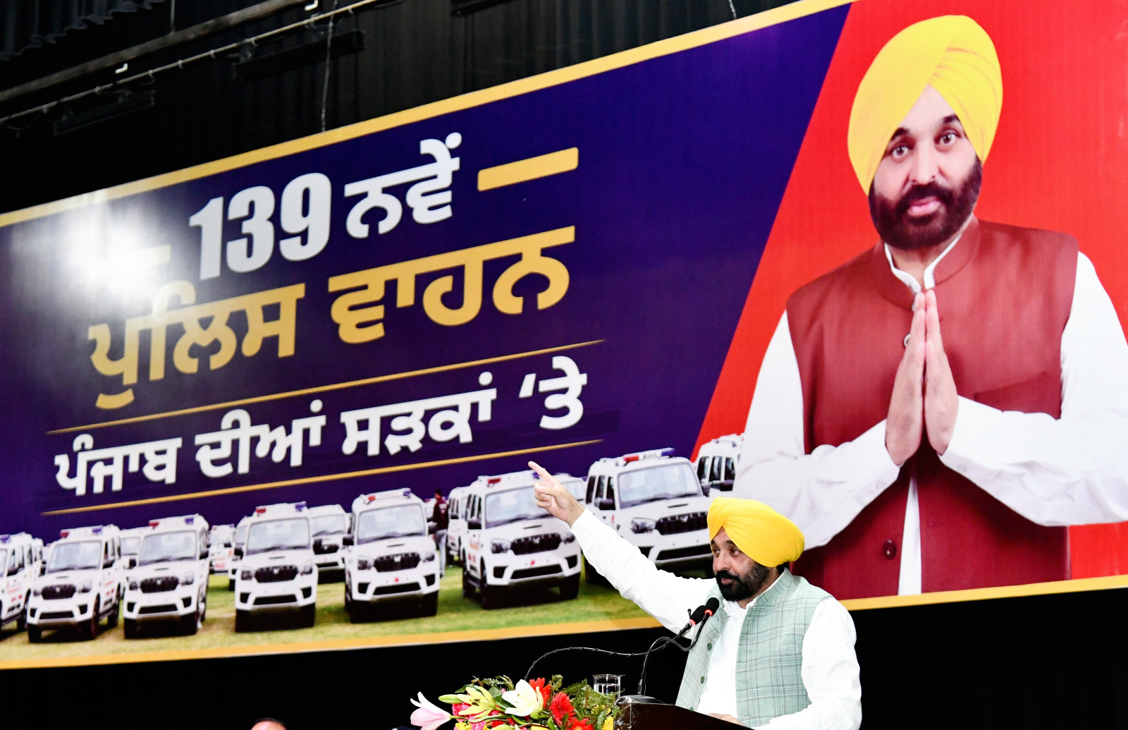 ਸੂਬੇ ਭਰ ਦੇ ਥਾਣਿਆਂ ਲਈ 139 ਨਵੇਂ ਵਾਹਨਾਂ ਨੂੰ ਹਰੀ ਝੰਡੀ ਦਿਖਾਉਣ ਤੋਂ ਬਾਅਦ ਇਕੱਠ ਨੂੰ ਸੰਬੋਧਨ ਕਰਦਿਆਂ ਮੁੱਖ ਮੰਤਰੀ ਨੇ ਕਿਹਾ ਕਿ ਇਸ ਪਹਿਲਕਦਮੀ ਨਾਲ ਸੂਬੇ ਭਰ ਦੇ ਸਾਰੇ 454 ਥਾਣਿਆਂ ਦੇ ਐਸ.ਐਚ.ਓਜ਼. ਨੂੰ ਨਵੇਂ ਵਾਹਨ ਮਿਲੇ ਹਨ। ਉਨ੍ਹਾਂ ਕਿਹਾ ਕਿ ਇਹ ਪਿਛਲੇ ਰੁਝਾਨਾਂ ਦੇ ਉਲਟ ਹੈ, ਜਦੋਂ ਨਵੇਂ ਵਾਹਨ ਜ਼ਮੀਨੀ ਪੱਧਰ `ਤੇ ਅਧਿਕਾਰੀਆਂ ਦੀ ਬਜਾਏ ਉੱਚ ਅਧਿਕਾਰੀਆਂ ਨੂੰ ਦਿੱਤੇ ਜਾਂਦੇ ਸਨ। ਭਗਵੰਤ ਸਿੰਘ ਮਾਨ ਨੇ ਕਿਹਾ ਕਿ ਐਸ.ਐਚ.ਓ. ਪੰਜਾਬ ਪੁਲਿਸ ਦਾ ਅਸਲੀ ਚਿਹਰਾ ਹੁੰਦੇ ਹਨ ਕਿਉਂਕਿ ਉਹ ਸਿੱਧੇ ਤੌਰ `ਤੇ ਲੋਕਾਂ ਨਾਲ ਜੁੜੇ ਹੁੰਦੇ ਹਨ ਅਤੇ ਕਾਨੂੰਨ ਵਿਵਸਥਾ ਬਣਾਈ ਰੱਖਣ ਦੀ ਵੱਡੀ ਜ਼ਿੰਮੇਵਾਰੀ ਉਨ੍ਹਾਂ ਉੱਤੇ ਹੈ।