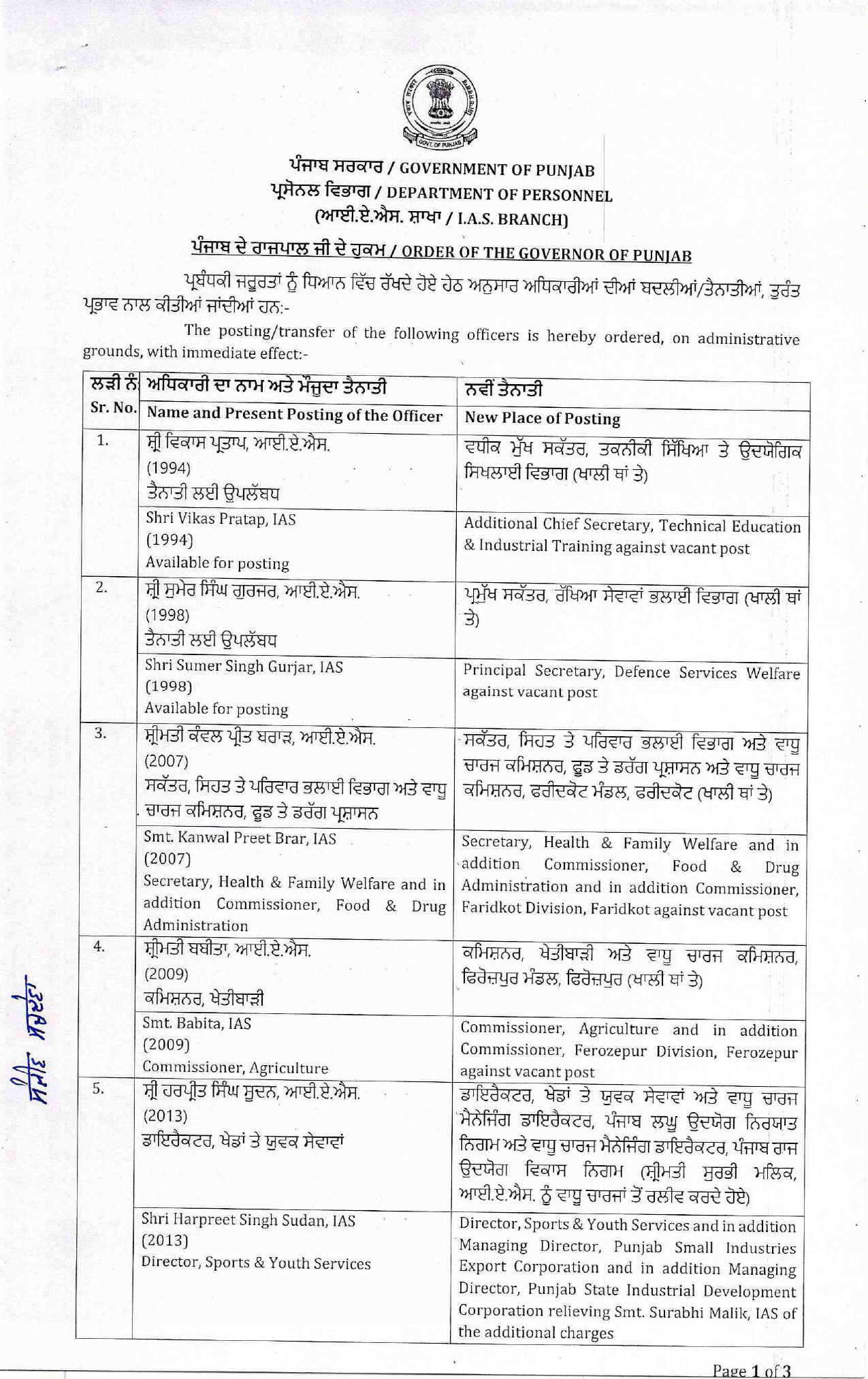 - – ਕਈ ਜ਼ਿਲ੍ਹਿਆਂ ਦੇ ਡੀਸੀ ਵੀ ਬਦਲੇ; ਪੜ੍ਹੋ ਪੂਰੀ LIST