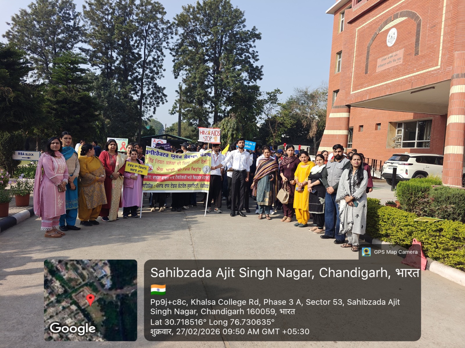ਸਾਹਿਬਜ਼ਾਦਾ ਅਜੀਤ ਸਿੰਘ ਨਗਰ, 2 ਮਾਰਚ (ਸਤੀਸ਼ ਕੁਮਾਰ ਪੱਪੀ):- ਯੁਵਕ ਸੇਵਾਵਾਂ ਵਿਭਾਗ ਵੱਲੋਂ ਪੰਜਾਬ ਏਡਜ਼ ਕੰਟਰੋਲ ਸੁਸਾਇਟੀ ਦੇ ਸਹਿਯੋਗ ਨਾਲ ਰੈਡ ਰਿਬਨ ਕਲੱਬਾਂ ਦਾ ਜ਼ਿਲ੍ਹਾ ਪੱਧਰੀ ਪ੍ਰੋਗਰਾਮ ਖ਼ਾਲਸਾ ਕਾਲਜ ਆਫ਼ ਬਿਜ਼ਨਸ ਸਟੱਡੀਜ਼, ਵਿਖੇ ਪ੍ਰੋਗਰਾਮ ਕਰਵਾਇਆ ਗਿਆ। ਜਿਸ ਵਿਚ ਜ਼ਿਲ੍ਹਾ ਮੋਹਾਲੀ ਦੇ 55 ਰੈਡ ਰਿਬਨ ਕਲੱਬਾਂ ਉਤਸ਼ਾਹ ਪੂਰਵਕ ਭਾਗ ਲਿਆ। ਇਸ ਸਮਾਗਮ ਦਾ ਉਦੇਸ਼ ਮਹੱਤਵਪੂਰਨ ਮੁੱਦਿਆਂ ਐੱਚ ਆਈ ਵੀ ਏਡਜ਼, ਡਰੱਗ ਜਾਗਰੂਕਤਾ, ਟੀ ਬੀ ਅਤੇ ਖੂਨਦਾਨ ਬਾਰੇ ਜਾਗਰੂਕਤਾ ਫੈਲਾਉਣਾ ਸੀ।