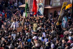 ਕਸ਼ਮੀਰ, 2 ਮਾਰਚ 2026 (ਵਿਸ਼ਵ ਵਾਰਤਾ) – ਪੱਛਮੀ ਏਸ਼ੀਆ ਵਿੱਚ ਚੱਲ ਰਹੀ ਜੰਗ ਕਾਰਨ ਸਥਿਤੀ ਚਿੰਤਾਜਨਕ ਹੈ। ਉੱਥੇ ਹੀ ਇਸ ਦੌਰਾਨ, ਈਰਾਨ ਦੇ ਸੁਪਰੀਮ ਲੀਡਰ ਖਮੇਨੀ ਦੀ ਮੌਤ ਨੂੰ ਲੈ ਕੇ ਜੰਮੂ-ਕਸ਼ਮੀਰ ਵਿੱਚ ਲਗਾਤਾਰ ਦੂਜੇ ਦਿਨ ਵਿਰੋਧ ਪ੍ਰਦਰਸ਼ਨ ਜਾਰੀ ਹਨ। ਸੁਰੱਖਿਆ ਬਲਾਂ ਨੇ ਸ਼੍ਰੀਨਗਰ ਦੇ ਬੇਮੀਨਾ ਇਲਾਕੇ ਵਿੱਚ ਪ੍ਰਦਰਸ਼ਨਕਾਰੀਆਂ ‘ਤੇ ਲਾਠੀਚਾਰਜ ਕੀਤਾ ਅਤੇ ਅੱਥਰੂ ਗੈਸ ਦੀ ਵਰਤੋਂ ਵੀ ਕੀਤੀ। ਕੁਝ ਲੋਕਾਂ ਨੂੰ ਹਿਰਾਸਤ ਵਿੱਚ ਲਿਆ ਗਿਆ। ਸ਼ੋਪੀਆਂ, ਬਾਰਾਮੂਲਾ, ਬਾਂਦੀਪੋਰਾ ਵਿੱਚ ਲੋਕਾਂ ਨੇ ਬਾਜ਼ਾਰ ਬੰਦ ਰੱਖੇ ਹਨ।