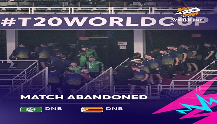 ਨਵੀ ਦਿੱਲੀ, 17 ਫਰਵਰੀ 2026 (ਵਿਸ਼ਵ ਵਾਰਤਾ) – ਜ਼ਿੰਬਾਬਵੇ ਅਤੇ ਆਇਰਲੈਂਡ ਵਿਚਾਲੇ ਟੀ-20 ਵਿਸ਼ਵ ਕੱਪ ਵਿੱਚ ਗਰੁੱਪ-ਬੀ ਦਾ ਮੁਕਾਬਲਾ ਬਾਰਿਸ਼ ਕਾਰਨ ਰੱਦ ਹੋ ਗਿਆ ਹੈ। ਇਸ ਦੇ ਨਾਲ ਹੀ ਦੋਵਾਂ ਟੀਮਾਂ ਨੂੰ ਇੱਕ-ਇੱਕ ਅੰਕ ਮਿਲਿਆ ਹੈ। ਇਸ ਦਾ ਫਾਇਦਾ ਜ਼ਿੰਬਾਬਵੇ ਨੂੰ ਹੋਇਆ ਹੈ ਅਤੇ ਉਹ ਸੁਪਰ-8 ਪੜਾਅ ਵਿੱਚ ਪਹੁੰਚ ਗਈ ਹੈ।