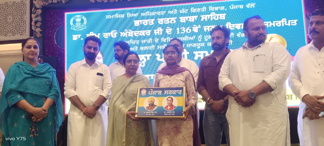 — ਡਾ. ਬੀ.ਆਰ. ਅੰਬੇਦਕਰ ਜੀ ਦੀ 136ਵੀਂ ਜਯੰਤੀ ਮੌਕੇ ਸਮਾਗਮ; ਲੈਪਟਾਪ ਅਤੇ ਸਿਲਾਈ ਮਸ਼ੀਨਾਂ ਵੰਡੀਆਂ, ਵਾਲੀਬਾਲ ਗਰਾਊਂਡ ਦਾ ਉਦਘਾਟਨ, ਕਰਜ਼ਾ ਵੰਡ ਸਮਾਗਮ ਦਾ ਐਲਾਨ